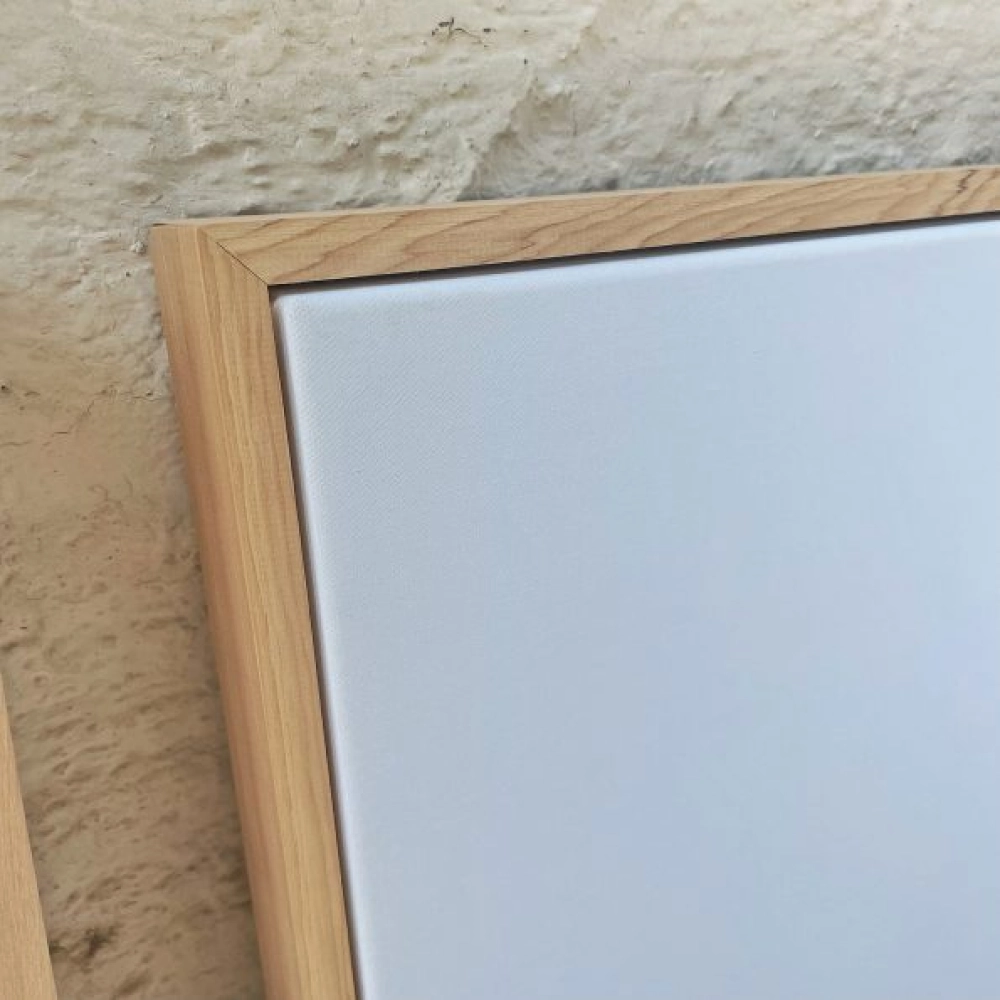 Imagen impresa en canvas 100% algodón y libre de ácido made in germany 340 gsm/2 + montaje en bastidor de madera de 2 pulgadas y enmarcación en mañio natural tipo cajón 20x43mm con cera natural.