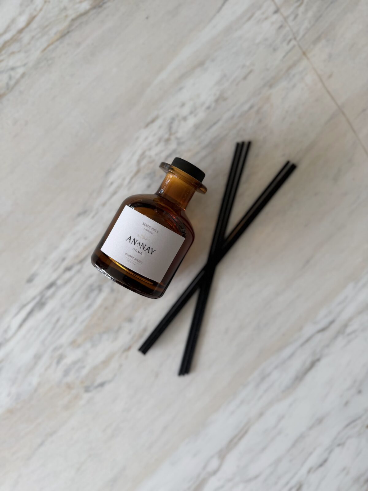Envase de vidrio. Incluye 5 varitas.