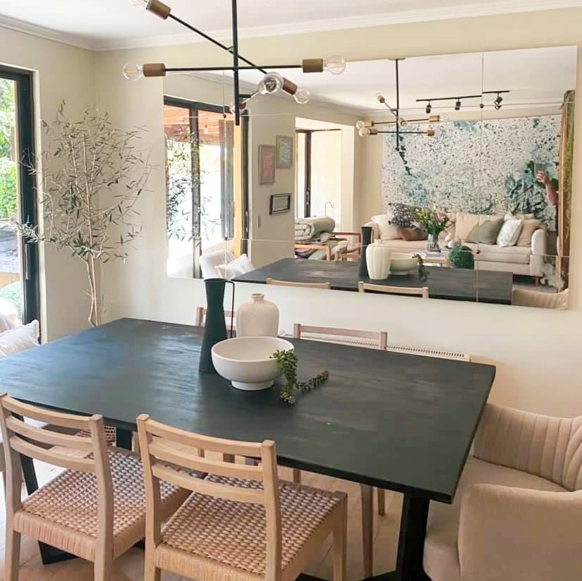 Espejo belga de 3mm de espesor, con cortes tipo gato, embellecedores (optativo) y cantos pulidos. Cotiza en las medidas que quieras a nuestro correo o por Instagram. Cuenta con bastidor de madera atrás para darle estructura y soporte.