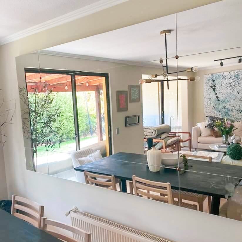Espejo belga de 3mm de espesor, con cortes tipo gato, embellecedores (optativo) y cantos pulidos. Cotiza en las medidas que quieras a nuestro correo o por instagram.