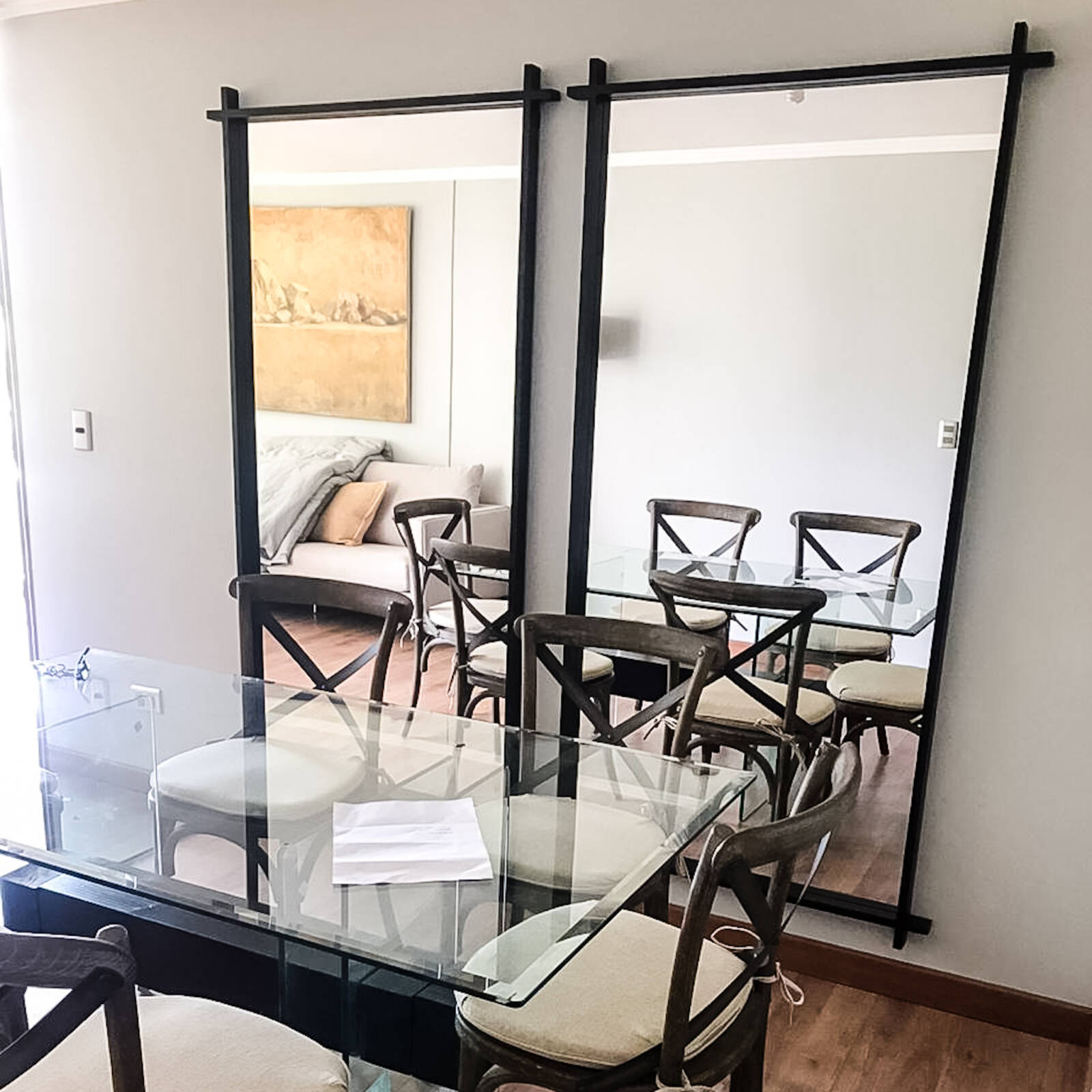 Espejo incoloro en una moldura negra con terminación sobresaliente en tipo cruz. Cotiza en las medidas que quieras a nuestro correo o por instagram.