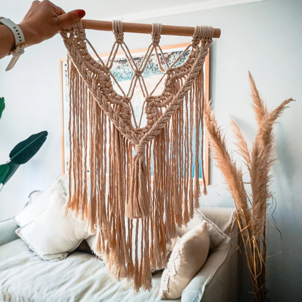 Composición 100% Cordón de Algodón Peinado+ Palo de Madera de 40 cm Hechos a pedido. Tiempo de demora depende de la carga de trabajo, pero aproximadamente 10 días hábiles. Se comunicará al momento de realizar el pedido.